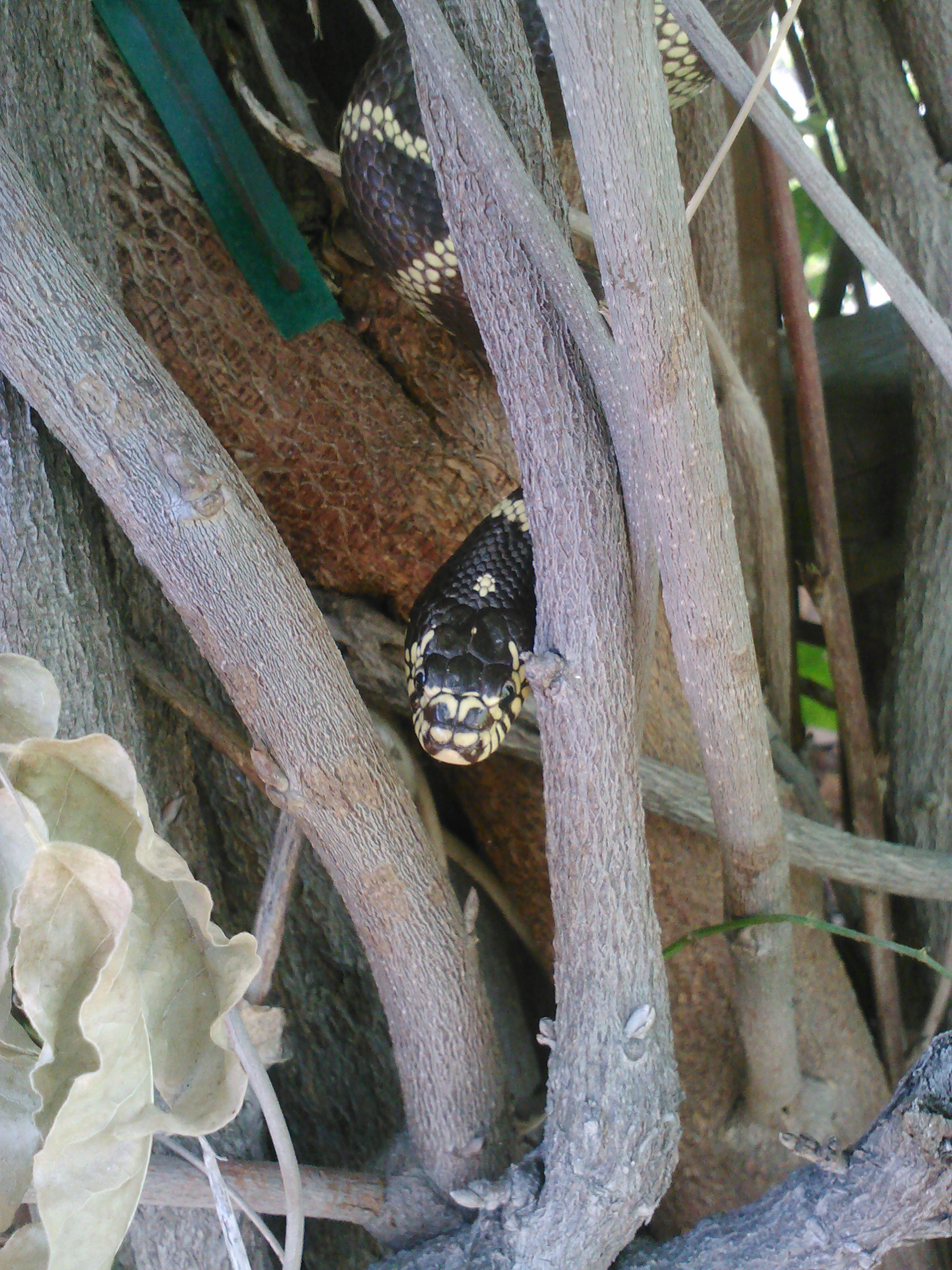 I reached in my pocket to pull out a nut for our friend, but instead of taking the peanut from my hand she shouted loudly at me “SNAKE!”. I’ve been around birds for long enough to know that they each make distinct sounds when there is danger around. The wild calls when a hawk is over head, the battle cry if a crow comes close to her clutch, and the sharp staccato shrill when a snake is in the bush.